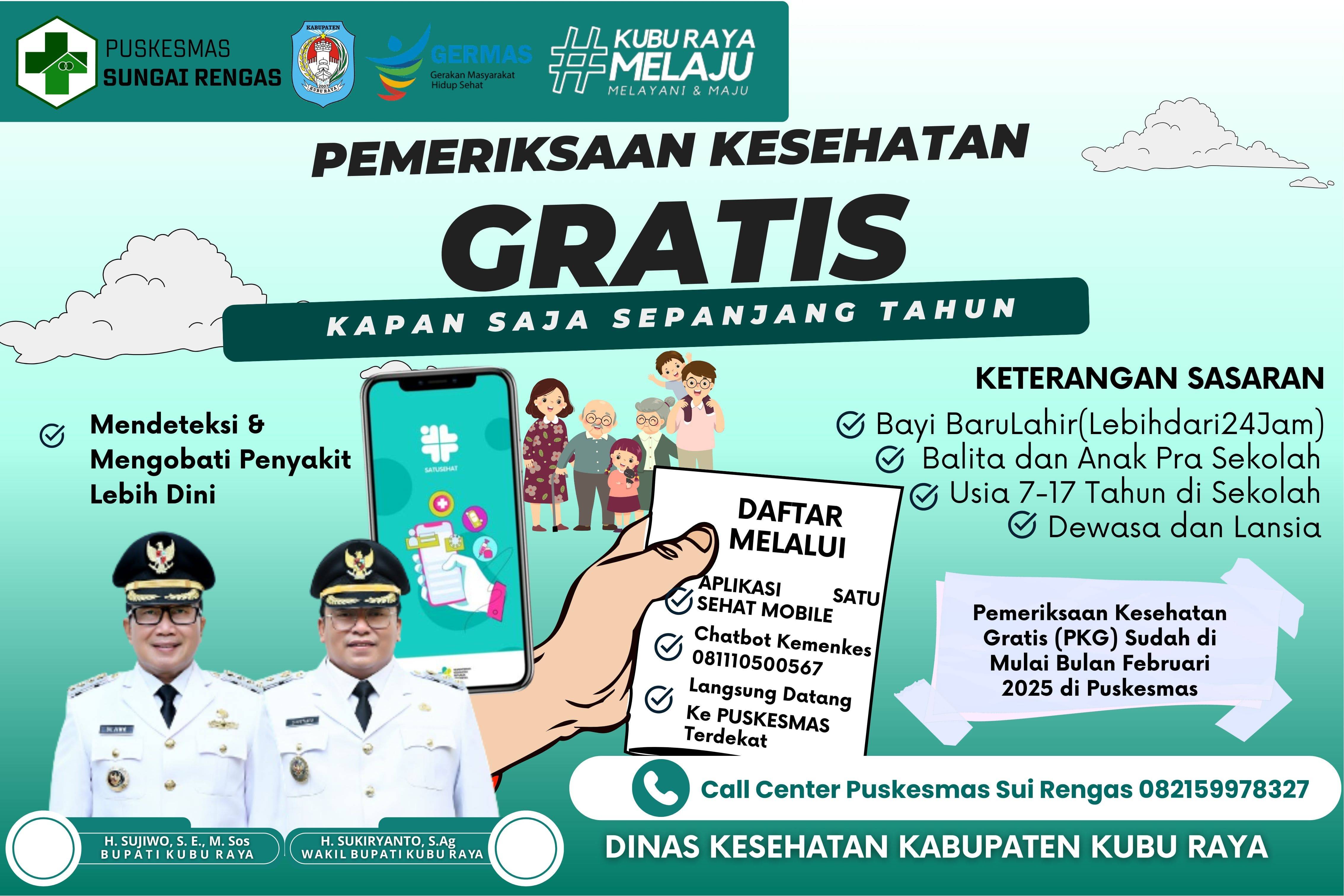 Hallo Sahabat Sehat, masih bingung daftar Cek Kesehatan Gratis?? Ada 3 cara mendaftar Cek Kesehatan Gratis : - Satu Sehat Mobile - Whatsapp Kemenkes - Datang langsung ke Puskesmas terdekat Daftarkan